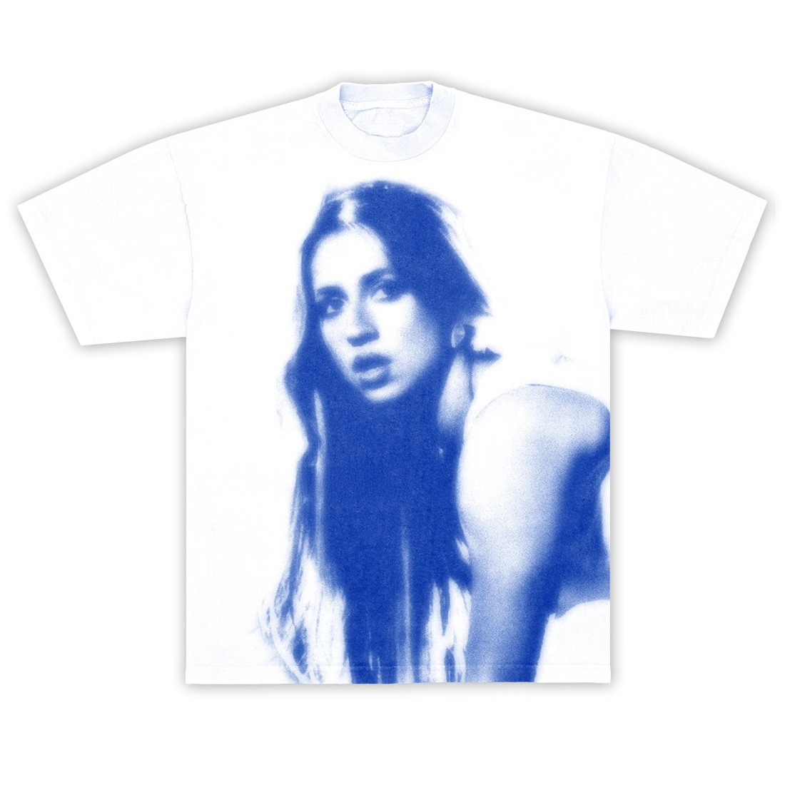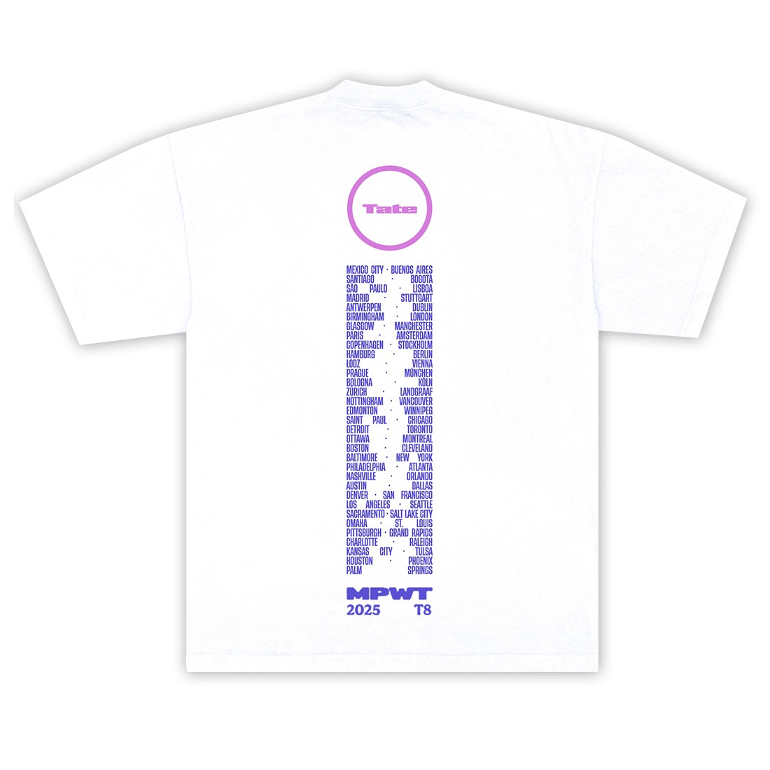 White 100% washed cotton tee with a large photo of Tate on the front and Miss Possessive World Tour dates on the back